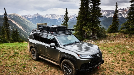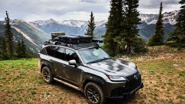 Кузов оснащён силовым обвесом CBI, багажником Alucase на крыше и тентом Yakima, дополняют которые светодиодные модули Rigid. В багажнике разместили воздушный компрессор и холодильник ARB, набор мебели от Kaon с комплектом бытовой техники Goose Gear. Внедорожную тему развивает LX 600 Alpine Lifestyle Concept — подготовленный совместно с Hiraku автомобиль представляет собой вариант для активного отдыха с максимальным комфортом. Модель оснастили силовым обвесом и лебедкой ComeUp, которые сочетаются с углепластиковыми расширителями колесных арок JAOS и коваными дисками Vossen с покрышками Bridgestone.