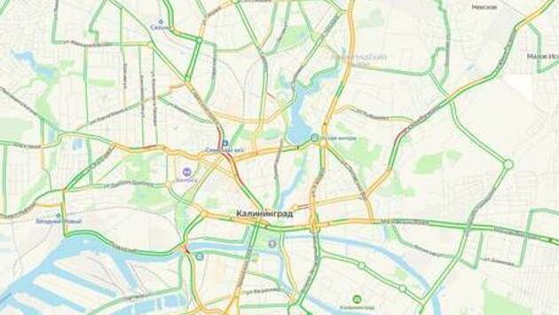 В центре Калининграда днём в понедельник, 7 ноября, собрались километровые пробки. Об этом говорят данные сервиса «Яндекс.Карты».