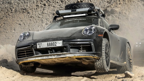 Компания Porsche опубликовала серию фотографий с тестов внедорожного 911 Dakar и назвала дату премьеры спорткара. Купе полностью рассекретят 17 ноября в рамках автосалона в Лос-Анджелесе. Машина получит увеличенный дорожный просвет, специфические настройки АБС и шины с более агрессивным рисунком протектора. Испытания 911 Dakar проходили по Франции, недалеко от Полярного Круга, а также в пустынях Дубая и Марокко.