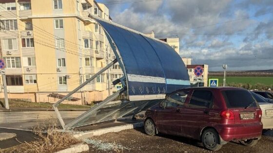 Сегодня, 13 ноября, в Саратове сильный ветер повалил автотобусную остановку. Очевидцы поделились этой информацией в соцсетях. Автор публикации уточнил, что инцидент случился на улице Автомобильной, 38 в посёлке Юбилейный. Остановочный павильон, судя по фото, рухнул на лобовое стекло припаркованного автомобиля марки «Matiz». Также очевидцы сообщают о слетевших с петель металлических воротах на Исаева и свисающем железном листе кровли дома №33 на Пензенской. Напомним, в воскресенье саратовцам обещали сильный ветер. При западном ветре его порывы могут усилиться до 17-22 м/с, а местами — до 25 м/с.