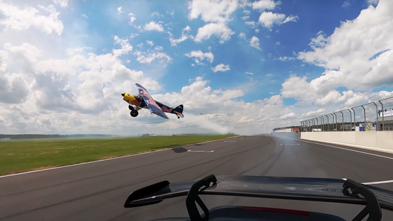 А за машиной пытался угнаться Люк Чепьела — профессиональный лётчик, который выполняет коммерческие рейсы на Airbus A320, а в свободное время занимается аэробатикой на лёгком и манёвренном Extra 330SC. В итоге участник Red Bull Air Race смог показать, как можно догнать автомобиль.