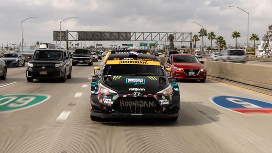 Американский гонщик и бизнесмен Кен Блок, который известен своими видеороликами проекта «Джимхана», продолжает свою профессиональную гоночную карьеру в классическом ралли. И несмотря на то, что в чемпионате мира WRC пилот не выступает, в США в гонках экипаж Кена Блока участвует до сих пор. После окончания контракта с Ford пилот пересел на автомобили Hyundai и продемонстрировал всем свой гоночный Hyundai i20 WRC в условиях уличного трафика.