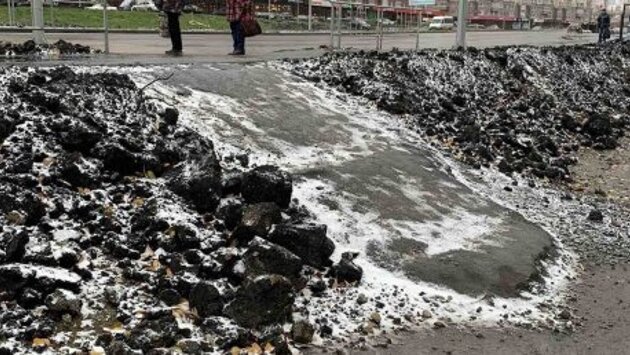 К сообщению автор прикрепил снимки подъема. Часть пешеходной зоны заасфальтирована, но при укладке покрытие не разровняли, теперь бугры покрыты ледяной коркой.