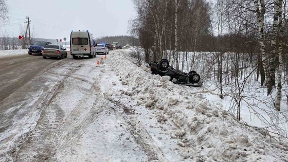 74-летний водитель госпитализирован после опрокидывания автомобиля в кювет в Нижегородской области