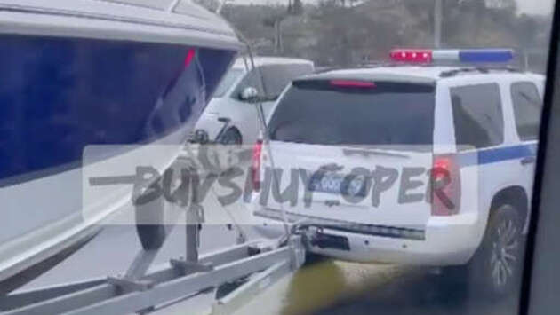 В Севастополе сняли на видео катер, который перевозила машина ГИБДД