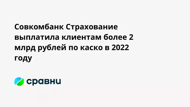 Совкомбанк Страхование выплатила клиентам более 2 млрд рублей по каско в 2022 году