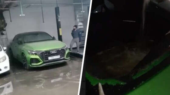 В Москве автомобиль Audi залило фекалиями из канализации на подземном паркинге