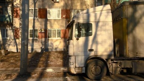 Из квартир открывается вид на парковку грузовиков. Жители пятиэтажки на улице Рахманинова возмущены тем, что водители ставят свои фуры под окнами дома № 49. Днем у обочины - лишь одна машина, к вечеру их больше. Выхлопные газы, звук работающего двигателя заставляют потерять покой.