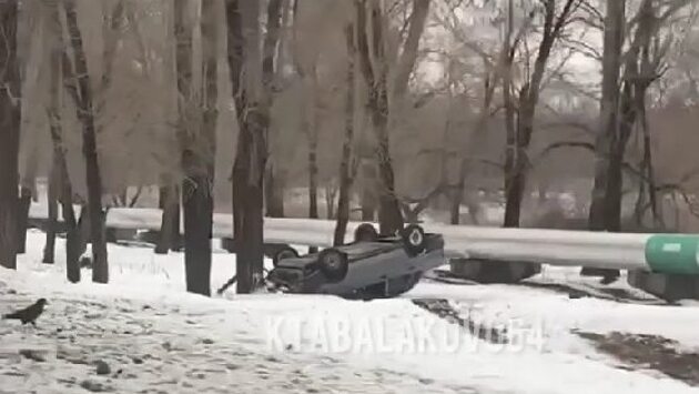 Автомобиль пролетел между деревьями и опрокинулся на крышу в Балакове