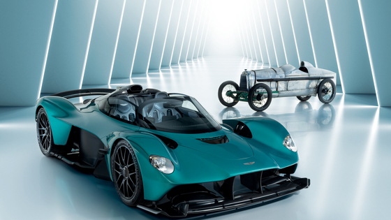 Анонс юбилейных премьер британский бренд проиллюстрировал студийными снимками исторического Razor Blade 1923 года — старейшего гоночного Aston Martin, дожившего до наших дней и считающегося самым узким гоночным автомобилем в истории: ширина кузова машины составляла всего 47 сантиметров. На фотографиях с ним соседствует современный гиперкар Valkyrie.