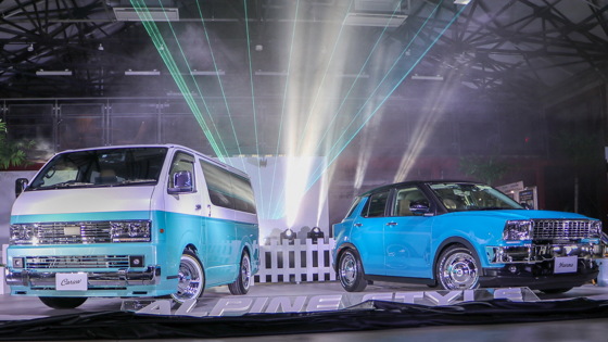 Что касается Toyota Hiace, то этот проект называется Carica. Основой ретровэна послужила модель 2004 года, которая до сих пор выпускается в Японии. Передняя маска полностью новая, а вот сзади меняются только накладки на бампер, выхлопные патрубки и добавляется молдинг поперёк крышки багажника. Атмосфера 1970-х создаётся за счёт двухцветной покраски и перехода на штампованные хромированные колёса.