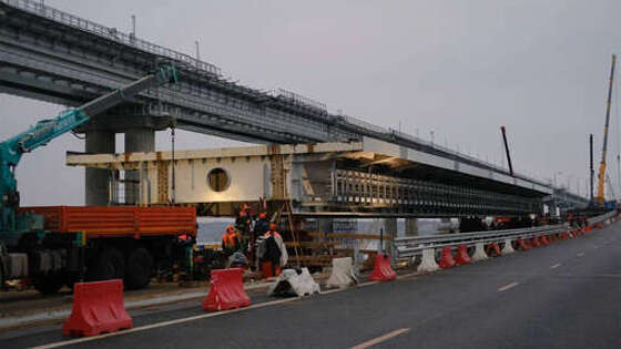 Вице-премьер РФ Марат Хуснуллин сообщил, что на Крымском мосту была завершена установка третьего пролета на левой стороне автомобильной части. Об этом он написал в своем Telegram-канале.