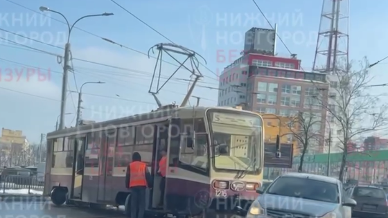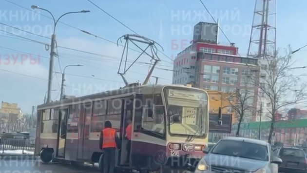 Трамвай № 5 сошел с рельсов в Нижнем Новгороде из-за постороннего предмета