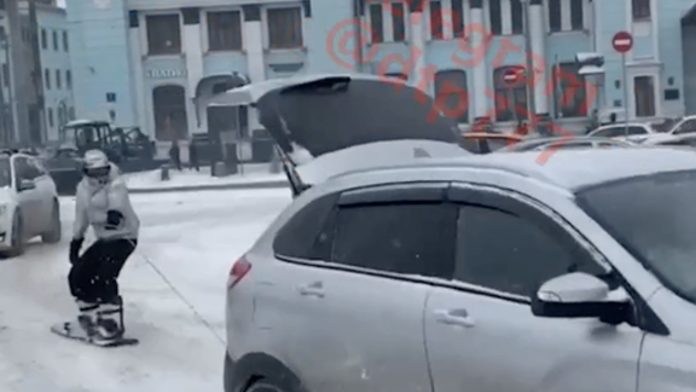 ГИБДД оштрафовала девушку, катавшую сноубордиста у Белорусского вокзала