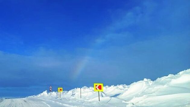 Зимнюю радугу россиянин заметил, проезжая по дороге в Печенгском районе области. 2 марта в регионе была малооблачная погода, что повлияло на появление радуги.