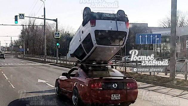 Это уже тренд: в Ростове замечена вторая машина, перевозившая на крыше автомобиль