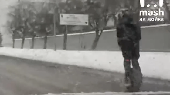 В Санкт-Петербурге мужчина на моноколесе разогнался до 70 км/час на снежной дороге. Об этом сообщает Telegram-канал Mash на Мойке.