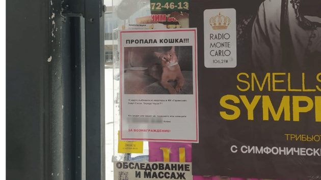 Всех, у кого есть какая-либо информация о местонахождении кошки, просят позвонить по телефону +7922-022-99-95.