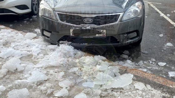 В Ханты-Мансийске на автомобиль KIA, припаркованного по улице Комсомольская, упала ледяная глыба с крыши. В результате удара у иномарки на капоте образовалась глубокая вмятина, сообщается в социальных сетях.