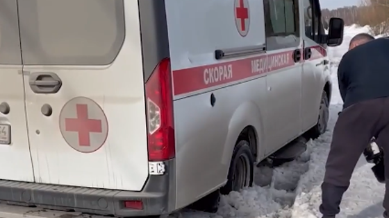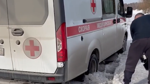 В Новосибирске в снегу застряла машина скорой помощи с пациентом в тяжёлом состоянии