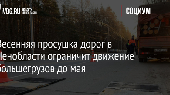 В Ленобласти стартовала весенняя просушка дорог, движение большегрузов будет серьезно ограничено до начала мая. Просушка продлится до начала мая. В это время проезд большегрузов будут измерять посты весового контроля. Максимально разрешенная масса на одну ось грузовика при движении по асфальту составляет пять тонн, а по гравию — три тонны. Ограничения нужны для того, чтобы основание дорог оттаяло после зимы. За движение с перегрузом предусмотрен штраф в несколько сотен тысяч рублей с эвакуацией машины на спецстоянку. При этом на сайте правительства Ленобласти опубликовали список большегрузов, для которых предусмотрены исключения.