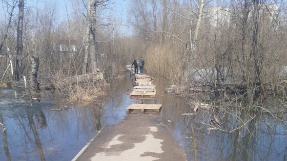 В администрации Московского района сообщили, что в связи с потеплением поднялся уровень воды в ближайшем ручье, что и привело к подтоплению дорожки.
