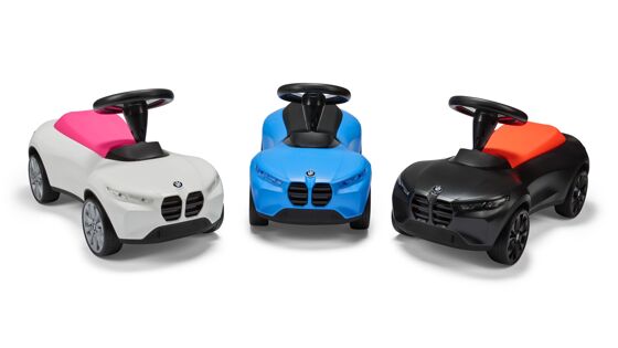 Обещают, что в новой детской машинке можно отыскать черты BMW 4 Series, BMW iX и даже BMW M3. В оснащение BMW Baby Racer входят мягкое сиденье, трёхспицевый руль со встроенным клаксоном и мягкие шины, изготовленные из переработанных материалов.