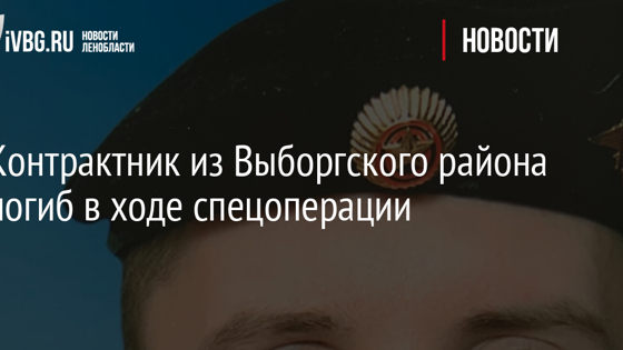 Контрактник из Выборгского района погиб в ходе спецоперации