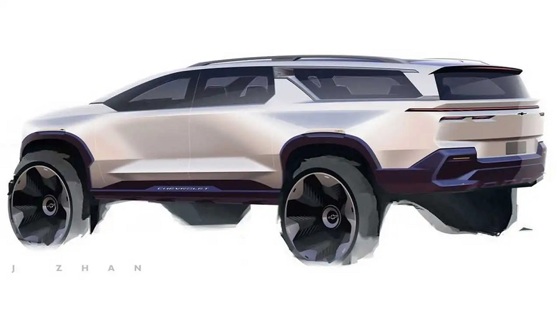 Это эскиз дизайна, пропорции преувеличены, но в общем дизайне есть явное сходство с Chevrolet Traverse. Задняя стойка — беспроигрышный вариант, а рейлинги на крыше похожи на те, что мы видели на закамуфлированных прототипах модели следующего поколения. Мы бы не стали обвинять кого-либо в том, что он подумал. Это стилизованный предварительный просмотр нового Traverse или, по крайней мере, раннее дизайнерское предложение.