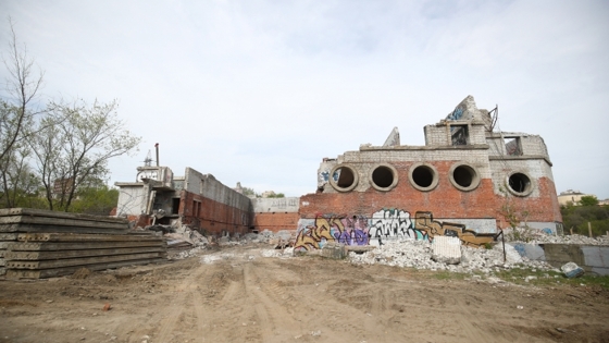 Для начала работ, которые будут идти в рамках утвержденной Градостроительным советом концепции развития поймы Царицы, осталось разобрать всего один этаж старого здания и вывезти мусор. По всей видимости, рабочие-демонтажники справятся с этой задачей очень быстро.