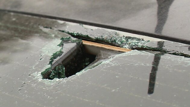 Сотрудник Госавтоинспекции зафиксировал повреждения. Помимо пробитого заднего стекла, крыши, есть царапины.