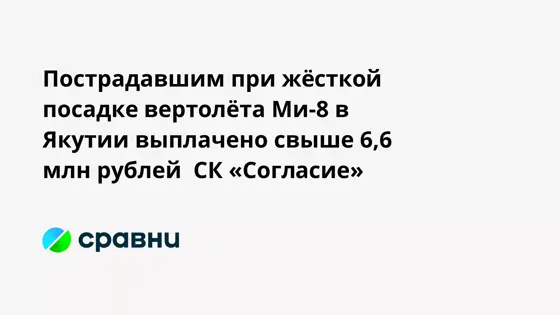 Пострадавшим при жёсткой посадке вертолёта Ми-8 в Якутии выплачено свыше 6,6 млн рублей СК «Согласие»