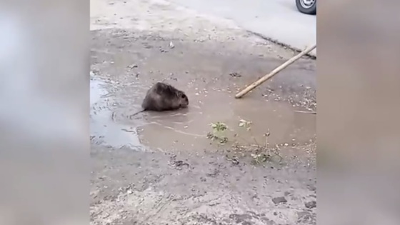 Бобра заметили в луже в Дзержинске. Видео опубликовал Telegram-канал «Нижний Новгород Без цензуры».