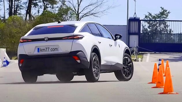 Команда сайта km77.com (Испания) сняла видео, на котором кроссовер-лифтбек Peugeot 408 выполняет тест на уклонение от препятствий. У него была довольно низкая максимальная скорость, но, тем не менее, его хвалили за надежность и безопасное и предсказуемое управление. Тестируемый автомобиль имел бензиновый двигатель мощностью 130 л.с., восьмиступенчатую автоматическую коробку передач, передний привод и шины 205/55 R19.