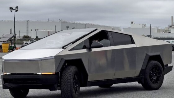 Премьера Cybertruck состоялась осенью 2019 года. С тех пор внешний вид пикапа, наделавший много шума, претерпел несколько изменений, призванных сделать его более «реалистичным» и пригодным для дорог общего пользования. Габариты электрокара были уменьшены и подкорректирована оптика, а на данном прототипе можно увидеть более крупные оранжевые указатели поворота над бампером.