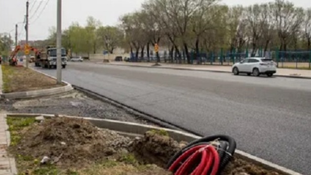 В настоящее время полным ходом идет вторая стадия ремонта центральной улицы на участке от улицы Артиллерийской до улицы Батарейной, где уже успели установить бортовой камень и уложили 60% пористого асфальтобетона и 50% щебеночно-мастичного асфальтобетона. Почти закончены работы по приведению в порядок уличных колодцев.