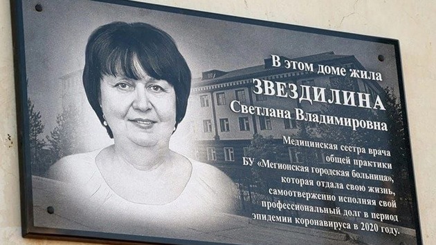 «От жителей Мегиона ко мне поступило обращение о том, что они хотят вернуть память о медсестре Светлане Звездилиной. Когда началась пандемия коронавируса, Светлана принимала самое активное участие в лечении пациентов от COVID-19, а в середине июня 2020 года тяжело заболела коронавирусом и вскоре умерла. В апреле 2021 года на доме, где жила Светлана, установили мемориальную доску. [Через год] ее убрала управляющая компания, из-за капитального ремонта дома. Они обещали вернуть знак на место по окончанию работ. Однако, как написали жители, доска с портретом героини на место так и не вернулась», — написал в своем telegram-канале Эдуард Исаков.