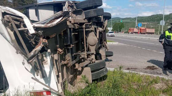 Под Кисловодском Mercedes пробил кузов маршрутной "Газели" и опрокинул ее