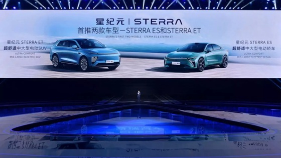 Sterra ET получил плавные очертания кузова, сходящиеся на прочной искусственной решетке радиатора спереди. Светодиодная полоса соединяет тонкие ДХО на передней части, а основные фары имеют пиксельный вид. Дверные ручки утоплены, а в задней части есть значительный спойлер.