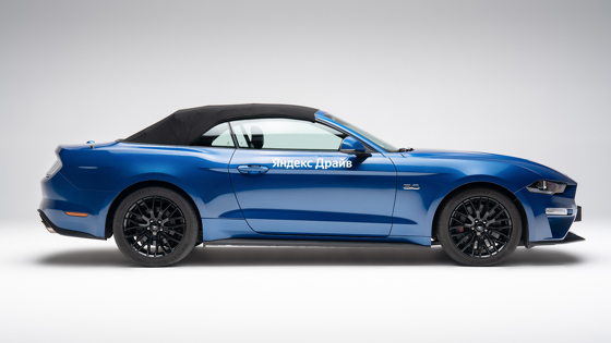 Клиентам «Яндекс Драйва» доступны заднеприводные Ford Mustang GT в кузовах купе и кабриолет красного и синего цветов. Оба спорткара оборудованы пятилитровым бензиновым V8 мощностью 450 лошадиных сил, который работает в паре с автоматической трансмиссией.