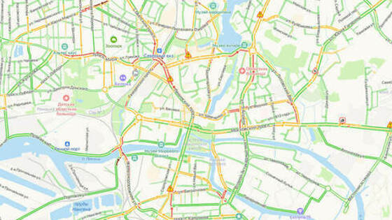 Движение затруднено на четырёх проспектах — Советском, Ленинском, Гвардейском и Мира. «Красным» приложение помечает ещё несколько улиц: Фрунзе, Пролетарскую, Карла Маркса, Железнодорожную и Литовский вал. Общая дорожная ситуация в городе оценивается в пять баллов.