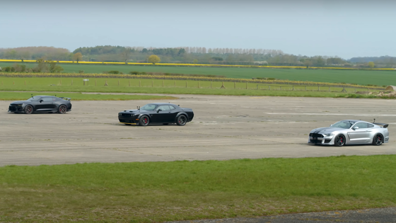 Гонка по прямой с участием трёх культовых американских масл-каров более ожидаемой и логичной была бы в исполнении блогеров из США, но подобное состязание в этот раз устроили авторы британского YouTube-канала. Проект Carwow собрал в своём очередном заезде по прямой Chevrolet Camaro ZL1, Ford Mustang и Dodge Challenger SRT Hellcat Redeye, причём только последний — в стоковом состоянии, тогда как два его оппонента были существенно доработаны с целью увеличения мощности.