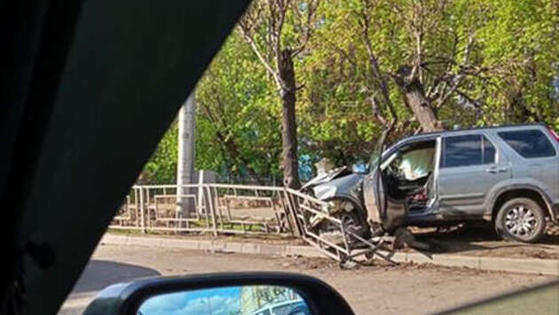 Автомобиль с мертвым водителем врезался в ограждение в Красноярске