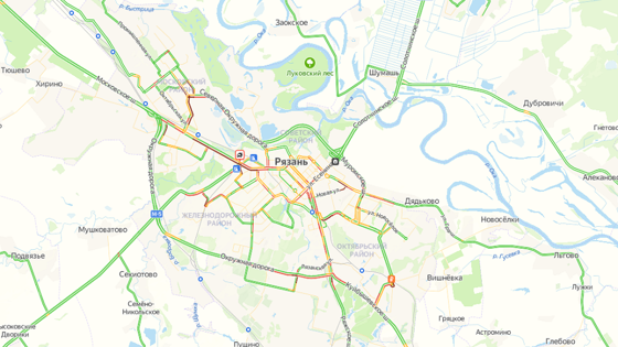 Жителям Дашково-Песочни тоже нелегко – по направлению в микрорайон стоят проезд Яблочкова и Касимовское шоссе. Затруднено движение на Южной окружной и на выезде из города по Куйбышевскому шоссе.