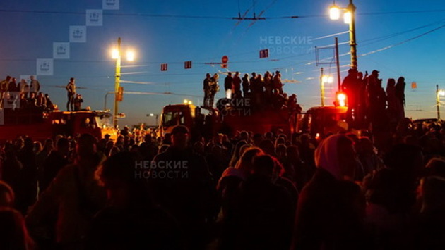 Сообщается, что толпа была настолько плотной, что в какой-то момент в ней началась давка. Очевидцы делятся кадрами с Дворцовой набережной. О пострадавших в результате давки на данный момент ничего не известно.