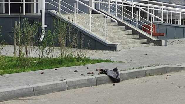 Пораженные, таксист и его собеседник несколько секунд смотрели то на машину, то вверх на окна, пытаясь определить, откуда сбросили мешок. Видимо, им это не удалось, и меньше чем через 2 минуты водитель поспешил покинуть опасное место.