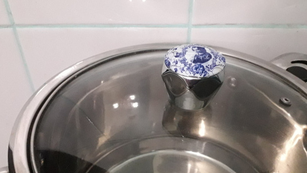 Обе крышки служат после ремонта уже больше года, термонаклейку на накладке первой крышки я, правда, сменила на заливку колпачка колерованной эпоксидкой, но это потому, что гжель по стилю мне не подходит🙂, в остальном ручки на крышках не изменились и отлично функционируют!😉