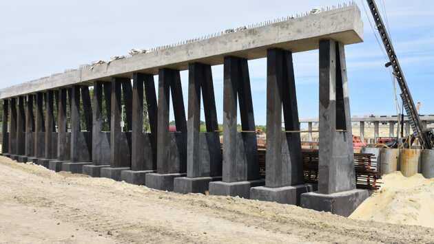 По его словам, установлены три из четырех опор сооружения (развязки), но довести до конца дело сейчас нельзя.