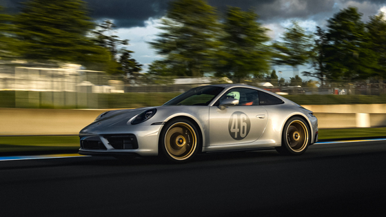 Вдохновение для 911 Carrera GTS Le Mans Centenaire Edition черпали в 356 SL, победившей в гонке «24 часа Ле-Мана» в 1951 году, и 911 GT1 — лидере марафона 1998 года. Серый оттенок кузова под названием Le Mans Silver разработали с оглядкой на классический Porsche 356 SL, у которого спецверсия позаимствовала и номер 46, нанесенный на борт. Другие особенности — легкосплавные колесные диски с окраской Aurum и красные ремни безопасности — вдохновлены более «молодым» 911 GT1.