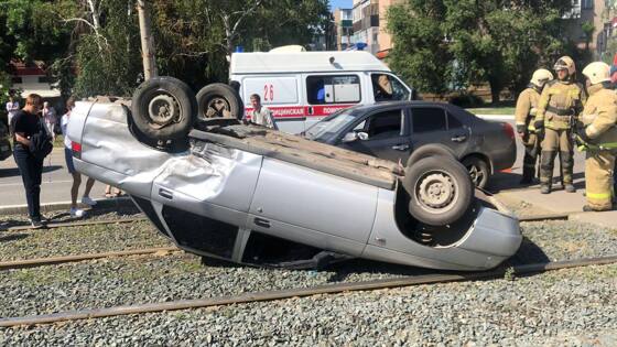 На пр. Ленина в Орске «ВАЗ» столкнулся с «Джили» и перевернулся на крышу